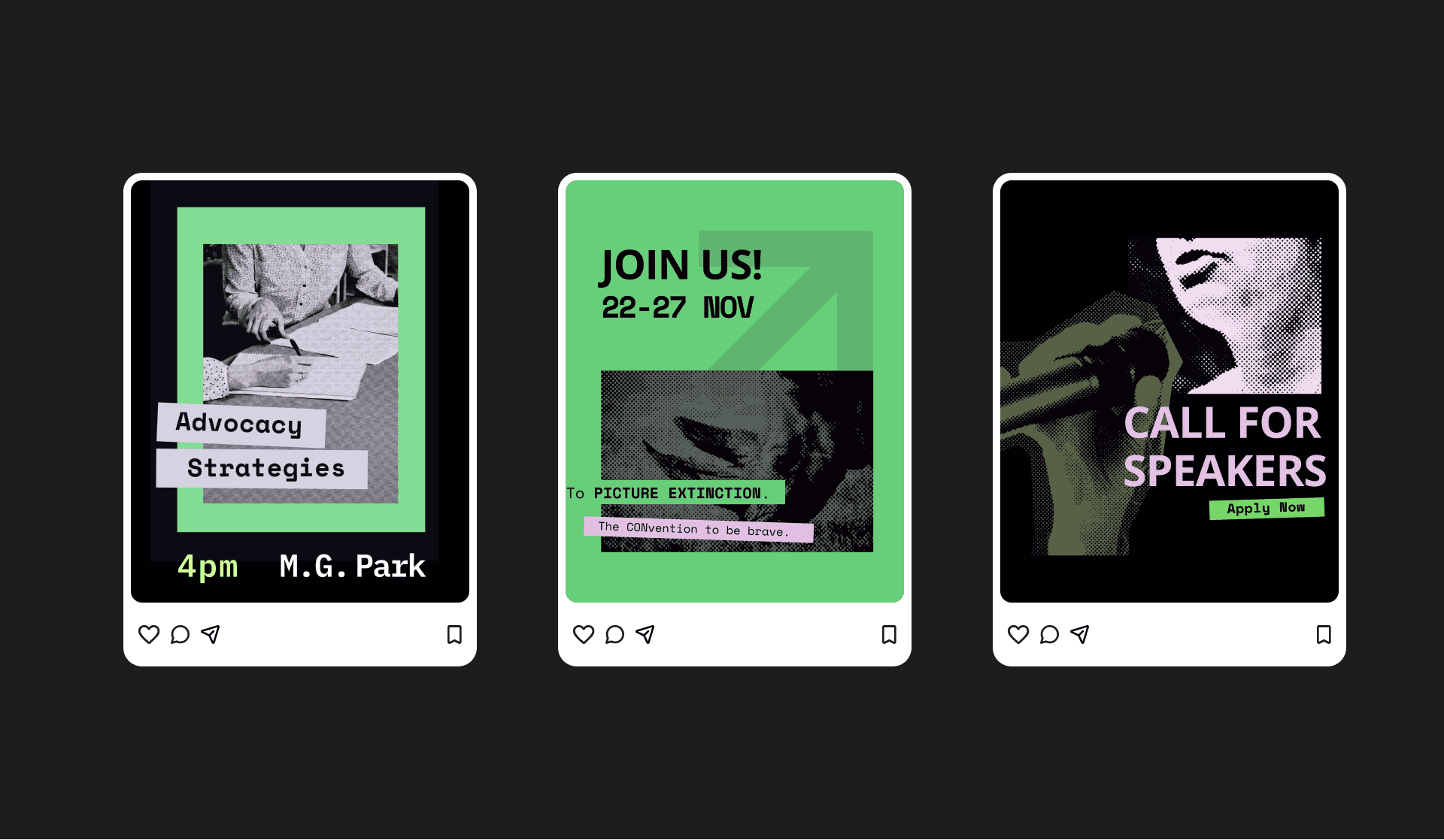 Designed for a proposed convention on human-nature coexistence and the threat of extinction. The work draws on dystopian imagery as a warning — using stark visual contrasts to signal urgency, with motifs inspired by a camera viewport.